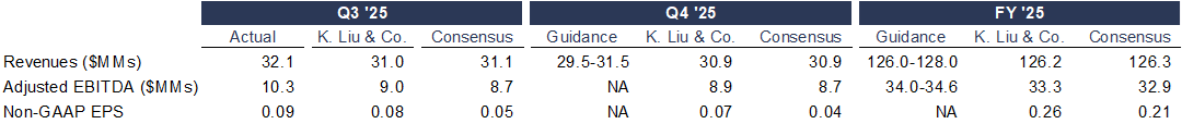 Management’s Q4 guidance calls for revenue of $29.5-$31.5 million. Prior to revisions, both consensus and our revenue estimate stood at $30.9 million. For FY ’25, management maintained its prior revenue guidance of $126.0-$128.0 million but raised its adjusted EBITDA margin target from 26.0% to 27.0%.
